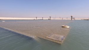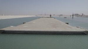 , حتى يصل ارتفاع المياه الى 3 متر فوق القطع المغمورة ومن ثم الشروع بالمرحلة الاخيرة بفتح الحد الفاصل بين القناة و حوض التصنيع بعده تعويمها و نقلها في مكانه في قناة خور الزبير .