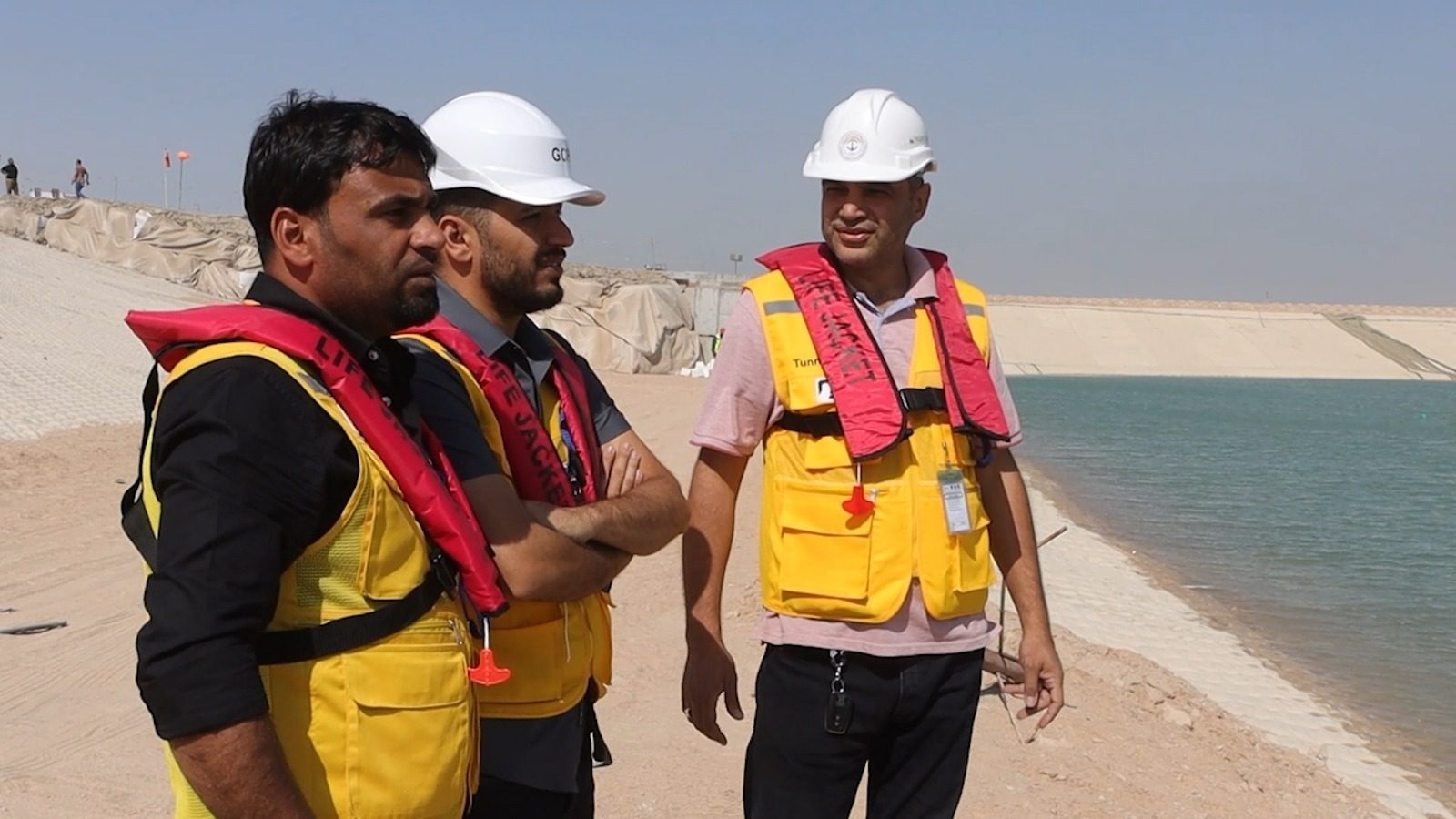 كما اضاف المهندس حيدر سالم جبر معاون مدير المشروع : هذه المرحلة مفصلية من عمر المشروع و مرحلة انتقالية بين العملية الانشائية لصب الخرسانة بالكونكريت المسلح و المرحلة الاخرى التعويم و تنصيب القطع بالمرحلة النهائية التي تعد المرحلة الاخيرة و الاشعار لبدأ العد التنازلي لأكمال أنجاز المشروع , و تجري عملية الفحص و التفتيش و التدقيق التي ستستمر لمدة شهرين من داخل القطع المغمورة لتاكد من سلامتها وعدم تسريب المياه بالكامل